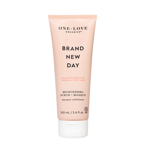 Give skin a gentle yet effective wake-up call with our reformulated, better-than-ever Brand New Day Microderma Scrub & Masque. Part of the One Love Organics family since 2010, this long-time favorite has been reimagined as a cream formula, providing the same plant-powered exfoliating benefits to deliver a clarified, smooth, and radiant complexion. Tropical enzymes derived from mango and banana extracts resurface skin, gently cleansing pores while encouraging a healthy, youthful-looking glow. Other ingredients include mineral-rich clay, which binds to unwanted dirt and oils, helping to eliminate them from the skin’s surface, while offering balancing benefits. Ultra-fine polishing minerals work to gently exfoliate, removing buildup and dead skin cells to encourage a velvety-soft complexion. Working synergistically, these ingredients provide both physical and chemical exfoliating benefits, delivering a fresh face that’s primed to absorb moisturizers or other treatment products. The deliciously creamy texture of this scrub-masque is largely due to the addition of antioxidant-rich mango butter, which leaves skin feeling supported, supple and smooth—never stressed or dehydrated.