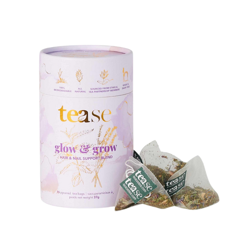 A natural beauty. A floral beauty boosting blend featuring lavender and nettle to strengthen and grow hair and nails. Caffeine free.